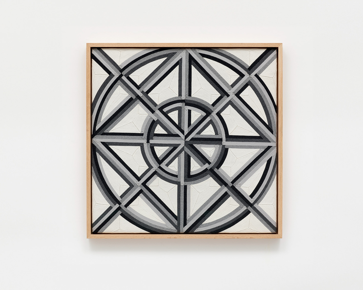 Wool yarn on wooden board covered with Campeche wax and framed with Optium Museum Acrylic