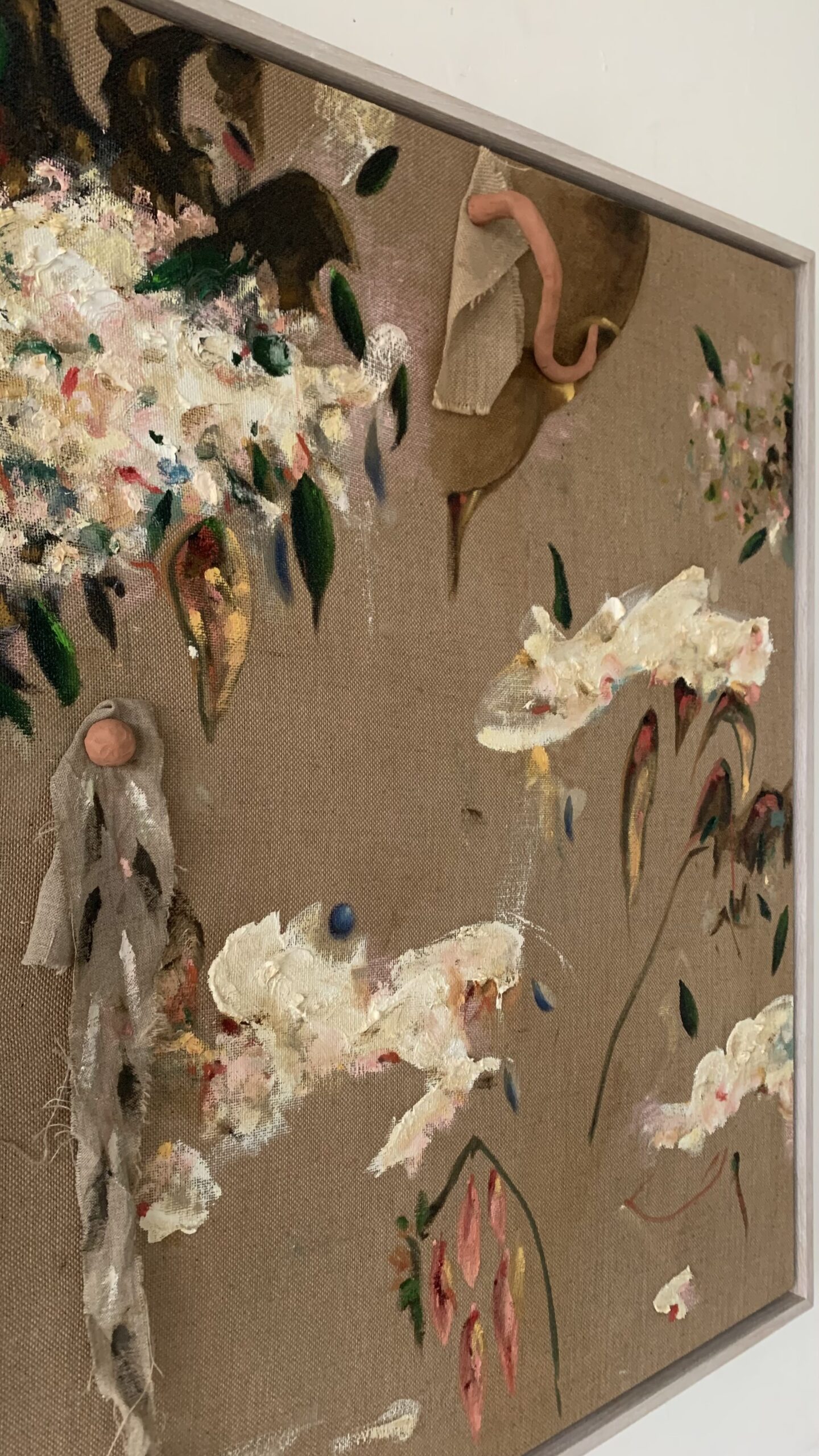 Oil on hessian, oil on linen, unglazed fired clay 105 cm x 85 cm x 13 cm € 8.000