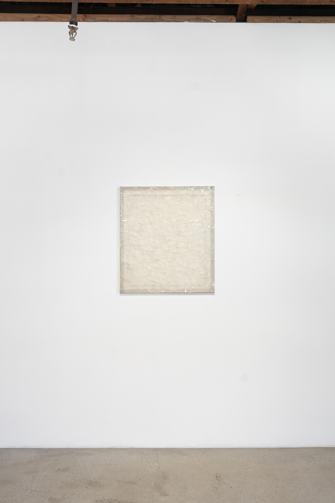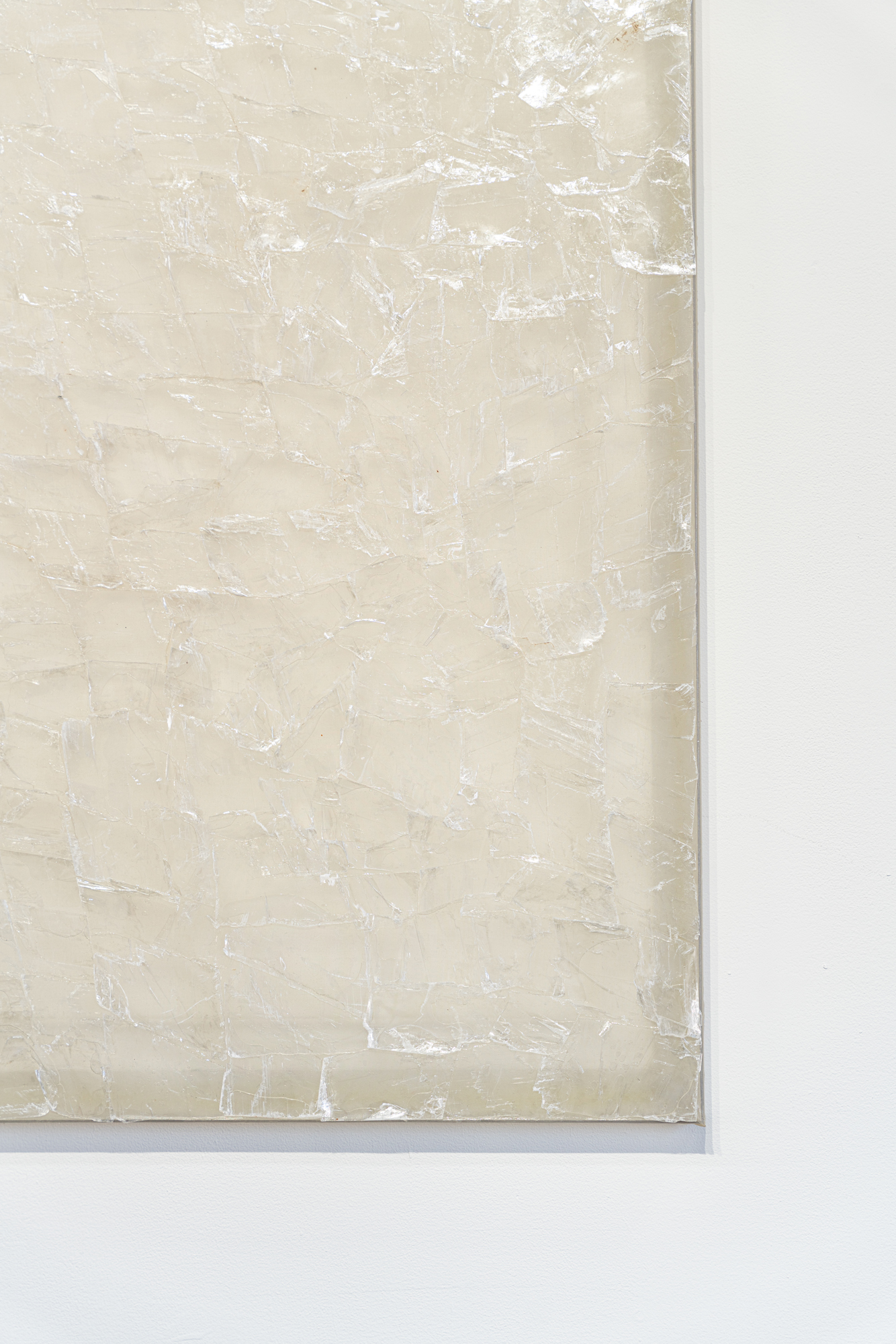 selenite on organza, acrylic frame