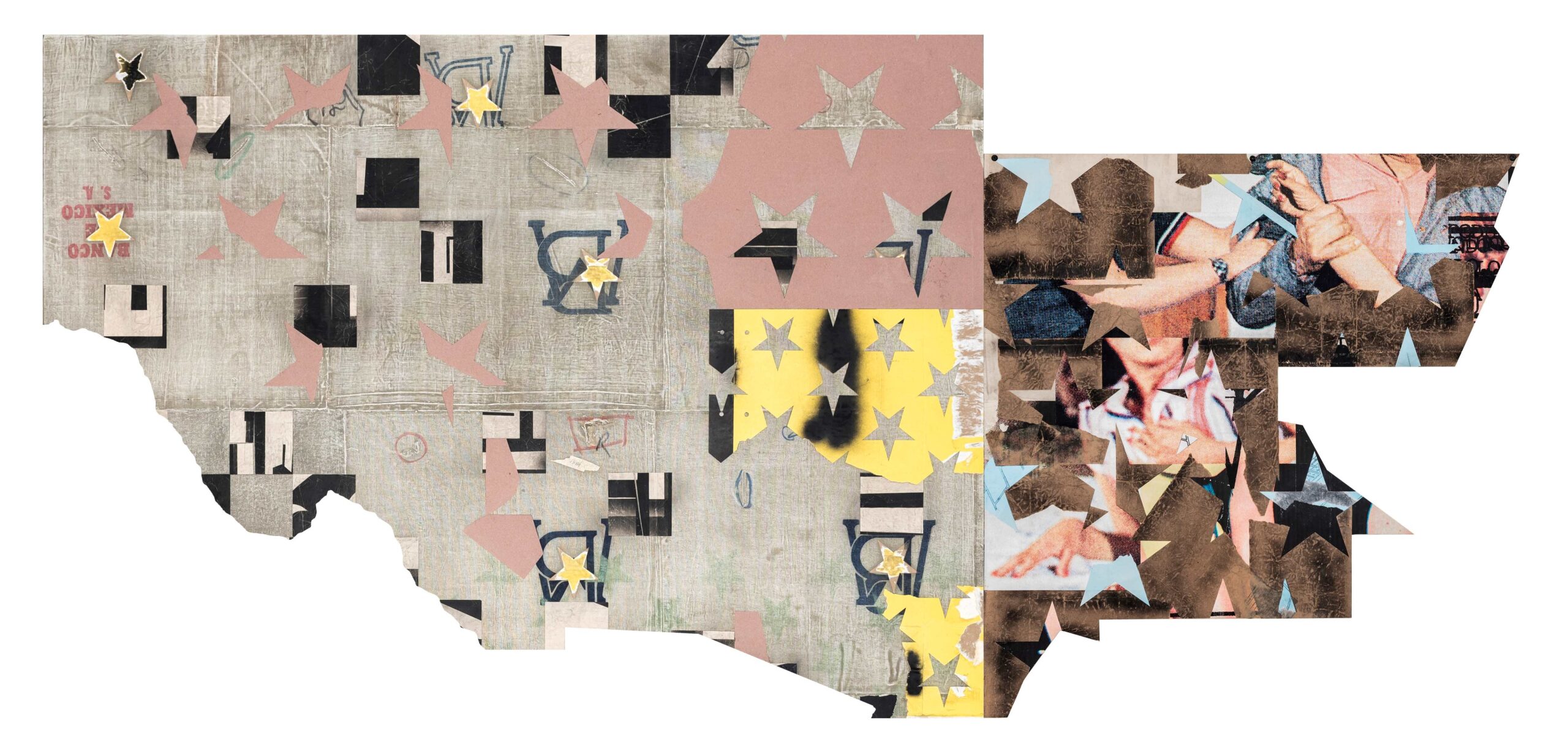 Collage, cement and enamel on canvas 110 cm x 232 cm Price on request