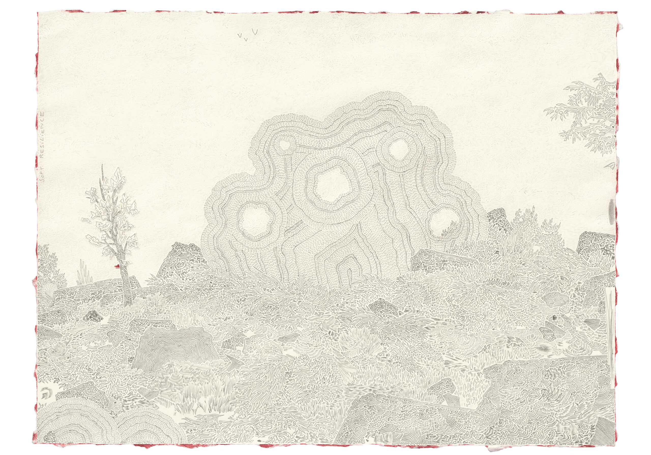 Pencil, eraser and collage on paper